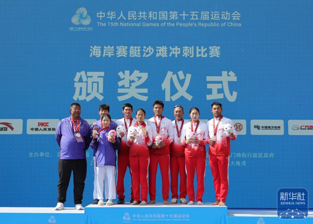 11月16日,第十五届全运会沿海赛艇混合双人双桨决赛在广东阳江举行。 ↑ 冠军广东队组合王云飞(右四)/张贵平(右五)、亚军福建队组合李志金(左二)/蒋英华(左三)、季军广东队组合米浩帅(右一)/王森(右二)与教练合影及颁奖典礼。 ↑ 广东队组合王云飞(左)/张桂平在比赛中。最终,他们在A决赛中击败福建队李志进/蒋英华,夺得冠军。 ↑ 广东队球员米浩帅在比赛中。最终,广东队糜浩帅/王森在B决赛中击败辽宁队孙曼/王思轩,获得季军。 ↑ 广东队组合米浩帅(左一)/韦森(左二)在比赛中。最终,他们在女单比赛中击败了辽宁队孙曼/王思轩。决赛B并获得第三名。 ↑ 广东队组合王云飞(左)/张桂平在比赛中。最终,他们在A决赛中击败福建队李志进/蒋英华,夺得冠军。 ↑ 福建队组合李志进/蒋英华(左)在比赛中。他们在A决赛中输给广东队王云飞/张桂平,获得亚军。新华社记者 李然 摄 上一篇:全运会丨羽毛球赛果-1/16决赛 下一篇:没有了