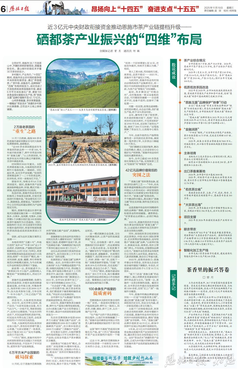 与此同时,恩施市农业农村局启动鄂西南茶产业集群项目,利用部分中央财税联动资金进行设备升级,为茶产业“智能化”铺路。