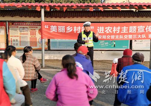 荆楚网(湖北日报)(谢明月连线)12月10日,襄阳交警三大队佩戴头盔交通管制,为村民送去安全防护。